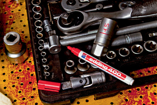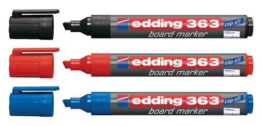 edding whiteboard marker met beitelvormige punt. Geschikt voor vrijwel alle oppervlakken, wrijf- en watervast. Cap-off techniek: droogt lange tijd...