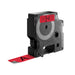 - De kleur van de tape is rood, de opdruk is zwart.